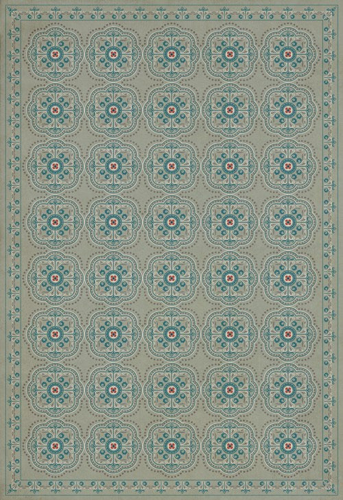 What are Vintage Vinyl Floorcloths made of? Two-ply vinyl with a latex padded backing. It is about 1/16” thick and can fit under most doorways. The material will lay flat and has a certified non-slip surface. It is non-flammable, phthalate-free, and UV-resistant for up to three years. Can my Vintage Vinyl Floorcloth be used outside? We su...