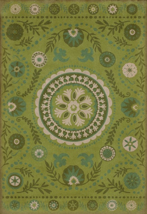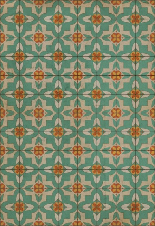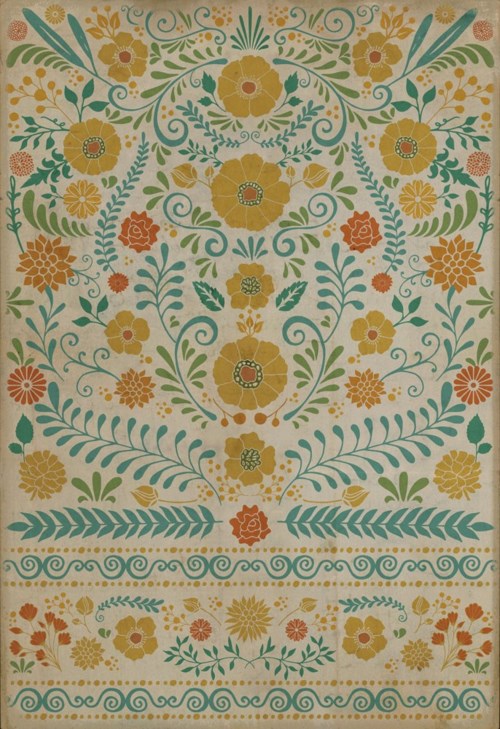 What is Vintage Vinyl® made of? Vintage Vinyl© floorcloths are made with two-ply vinyl that has a latex padded backing. It is about 1/16” thick and can fit under most doorways. The material is lay flat and has a certified non-slip surface. It is non-flammable, phthalate-free, and UV-resistant for up to three years. Can Vintage Vinyl® be use...