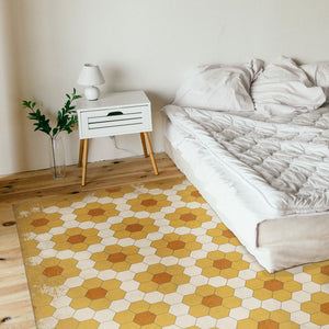 What are Vintage Vinyl Floorcloths made of? Two-ply vinyl with a latex padded backing. It is about 1/16” thick and can fit under most doorways. The material will lay flat and has a certified non-slip surface. It is non-flammable, phthalate-free, and UV-resistant for up to three years. Can my Vintage Vinyl Floorcloth be used outside? We su...