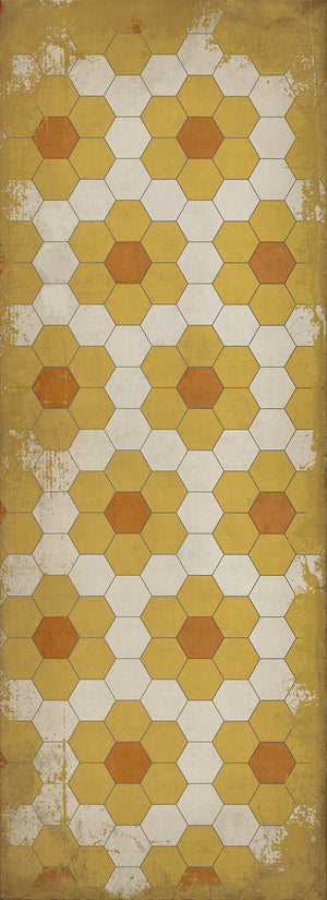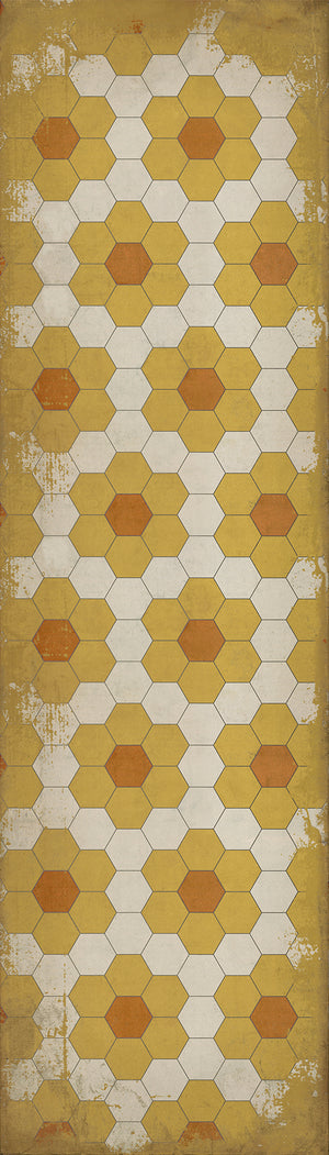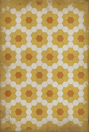 What is Vintage Vinyl® made of? Vintage Vinyl© floorcloths are made with two-ply vinyl that has a latex padded backing. It is about 1/16” thick and can fit under most doorways. The material is lay flat and has a certified non-slip surface. It is non-flammable, phthalate-free, and UV-resistant for up to three years. Can Vintage Vinyl® be use...